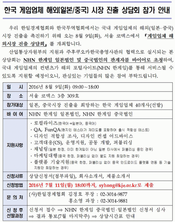 [한일경제협회] 한국 게임업체 해외(일본/중국) 시장 진출 상담회 참가 안내